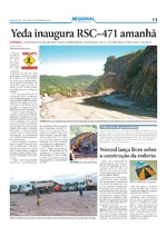 Depois de mais de sete anos do início das obras, a governadora Yeda Crusius inaugura o eixo-norte da RSC–471 nesta quarta-feira, às 10 horas. A partir de amanhã os 111,6 quilômetros do trecho que é considerado o novo corredor de exportação do Sul do País, ligando o Norte do Estado ao Porto de Rio Grande, estará liberado para o tráfego de veículos.